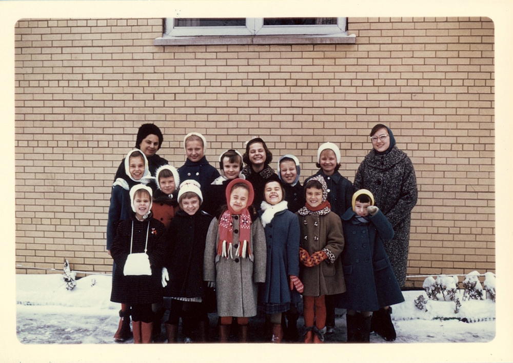 Valerie - tallest in the back row on the end, little sister Nijole right below her. Around 1960.