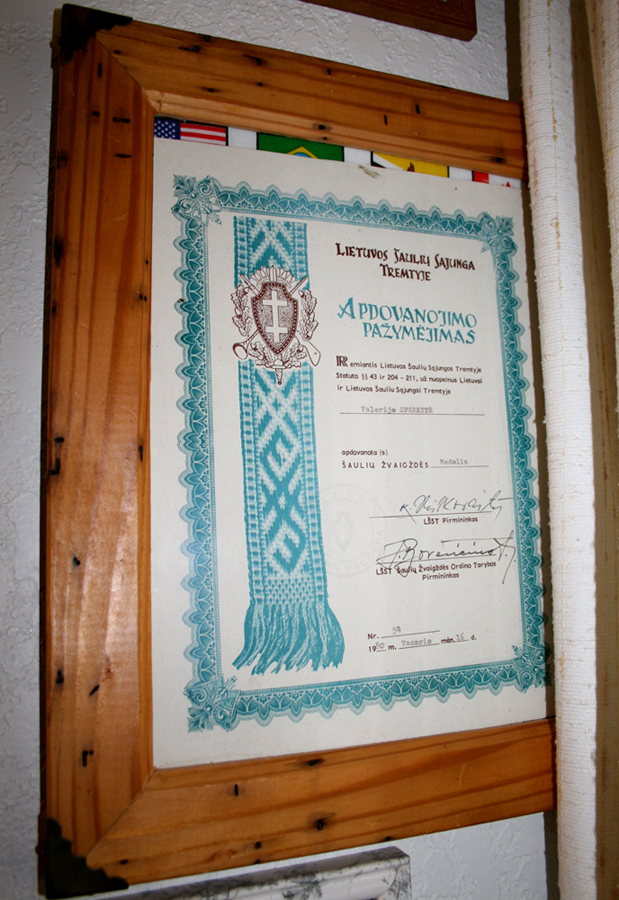 1980 certificate from Sauliu Association - Valerie was decorated with a medallion for her service.