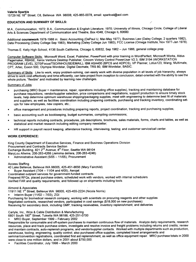 Valerie's resume up till 2005 -
